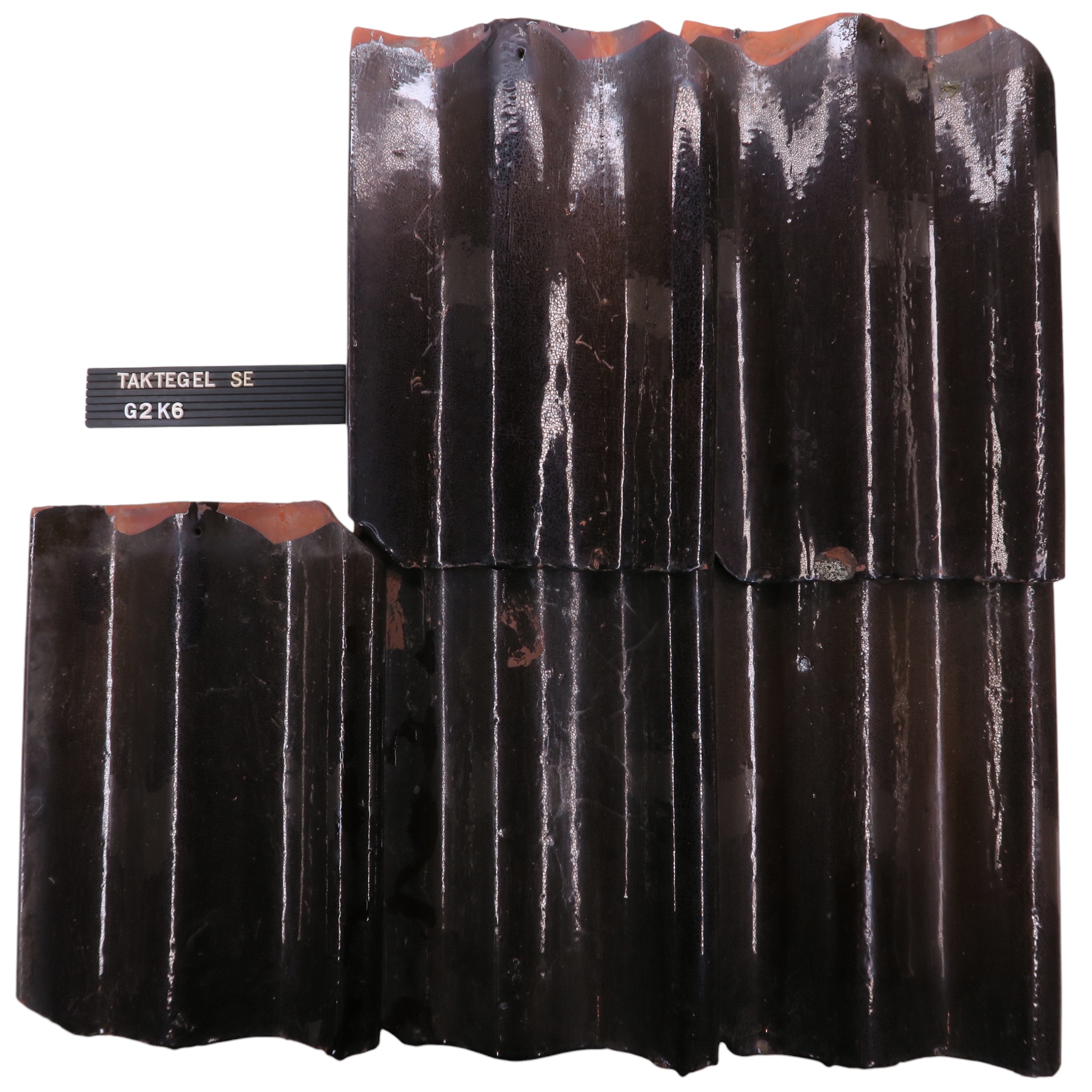 Brunglaserad tvåkupig strängpressad panna från Heby. Ett fint parti men det finns små skador på vissa vingar.